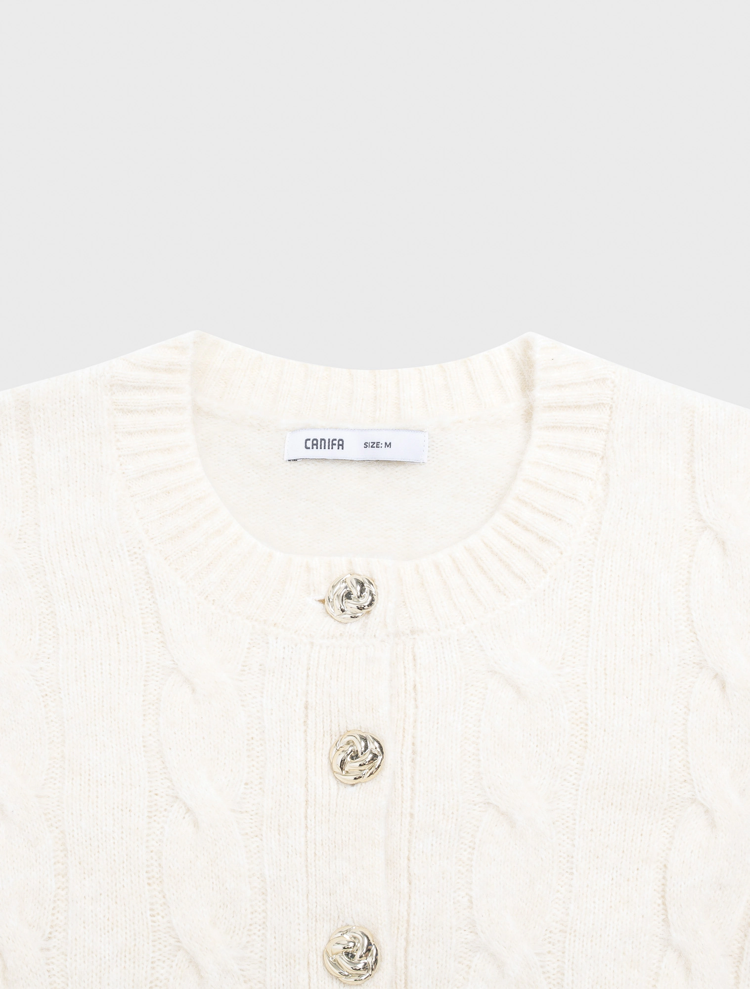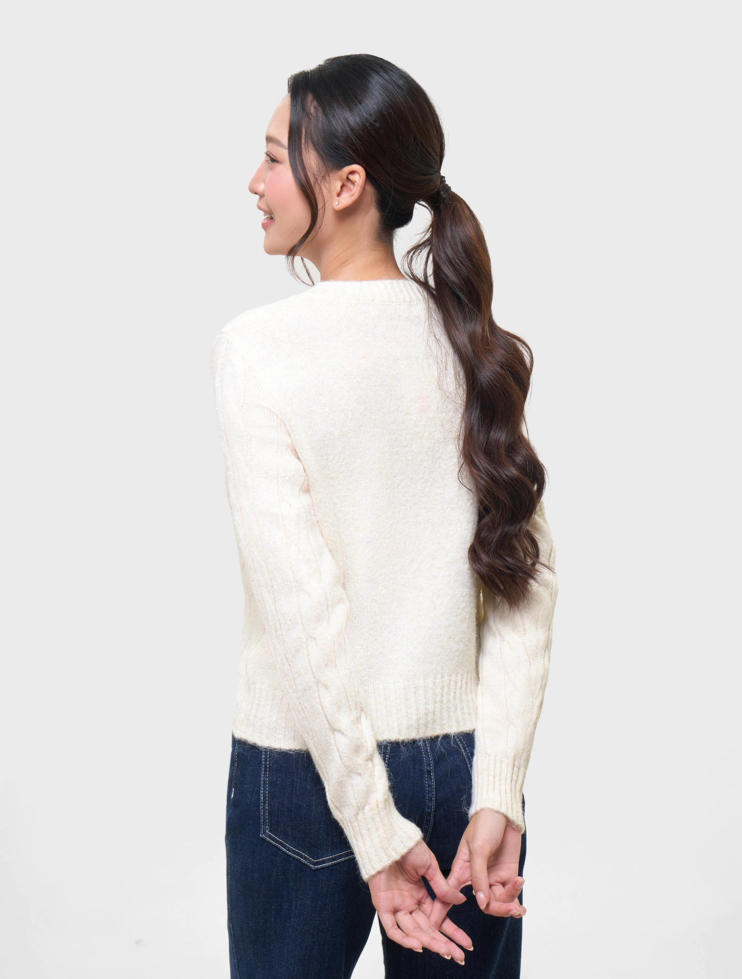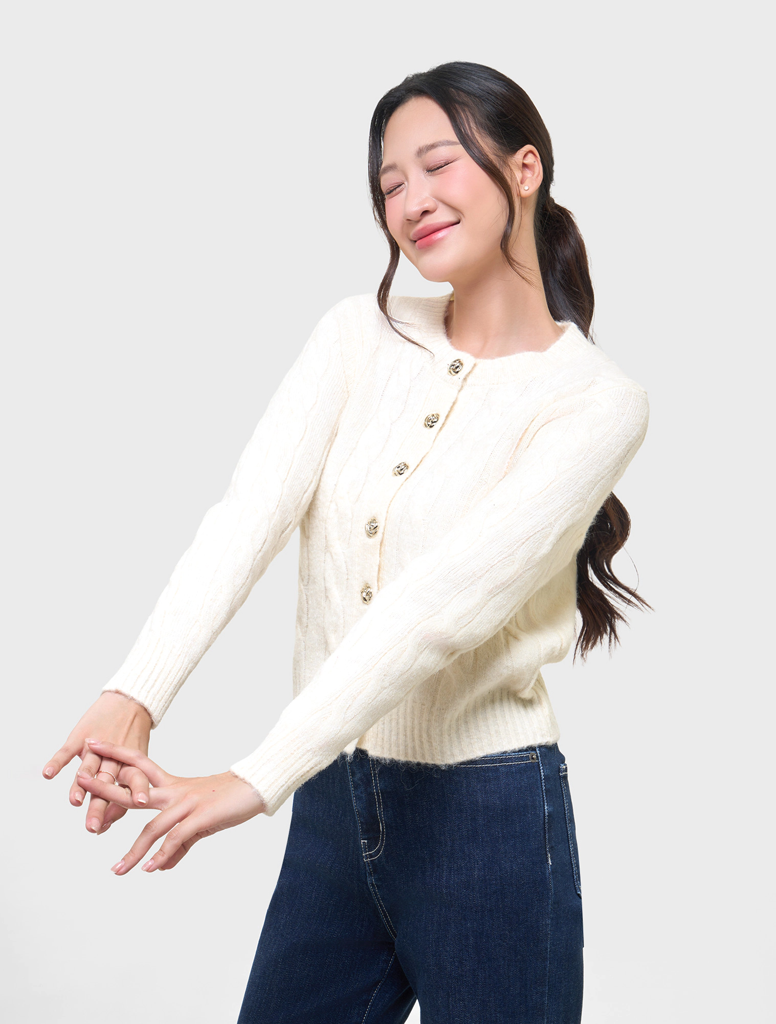 Áo khoác len nữ dài tay cổ tròn, dệt thừng.