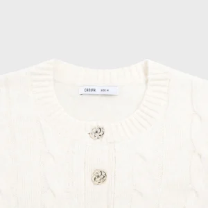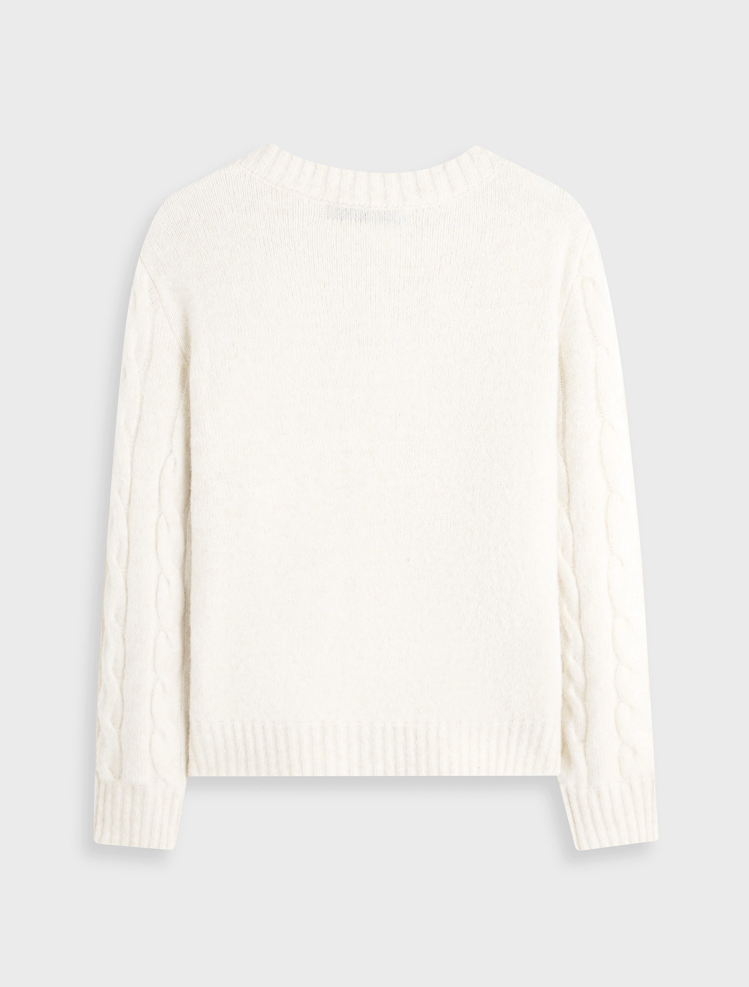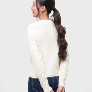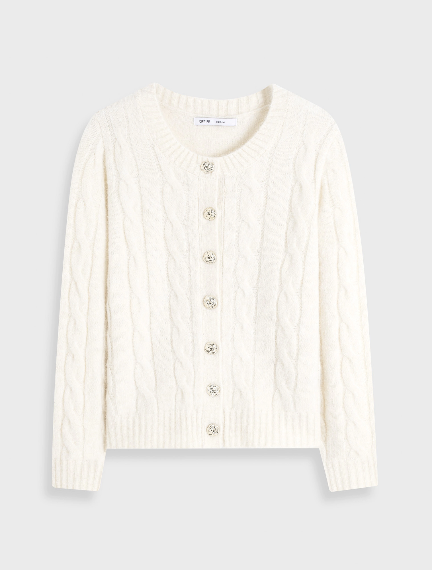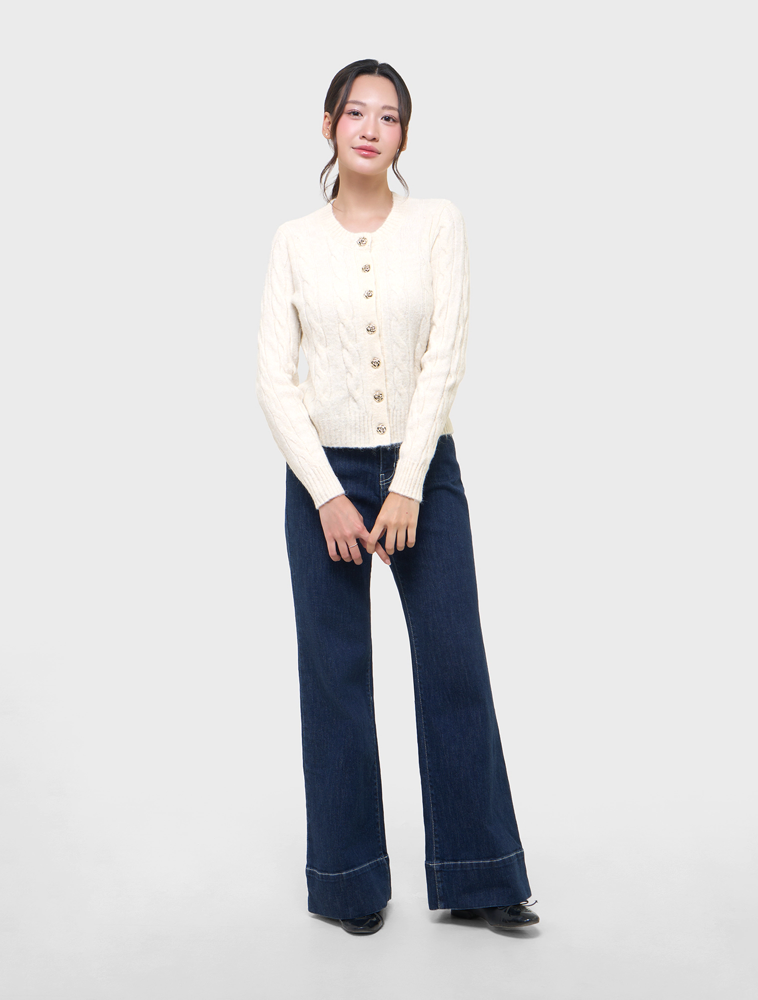 Áo khoác len nữ dài tay cổ tròn, dệt thừng.