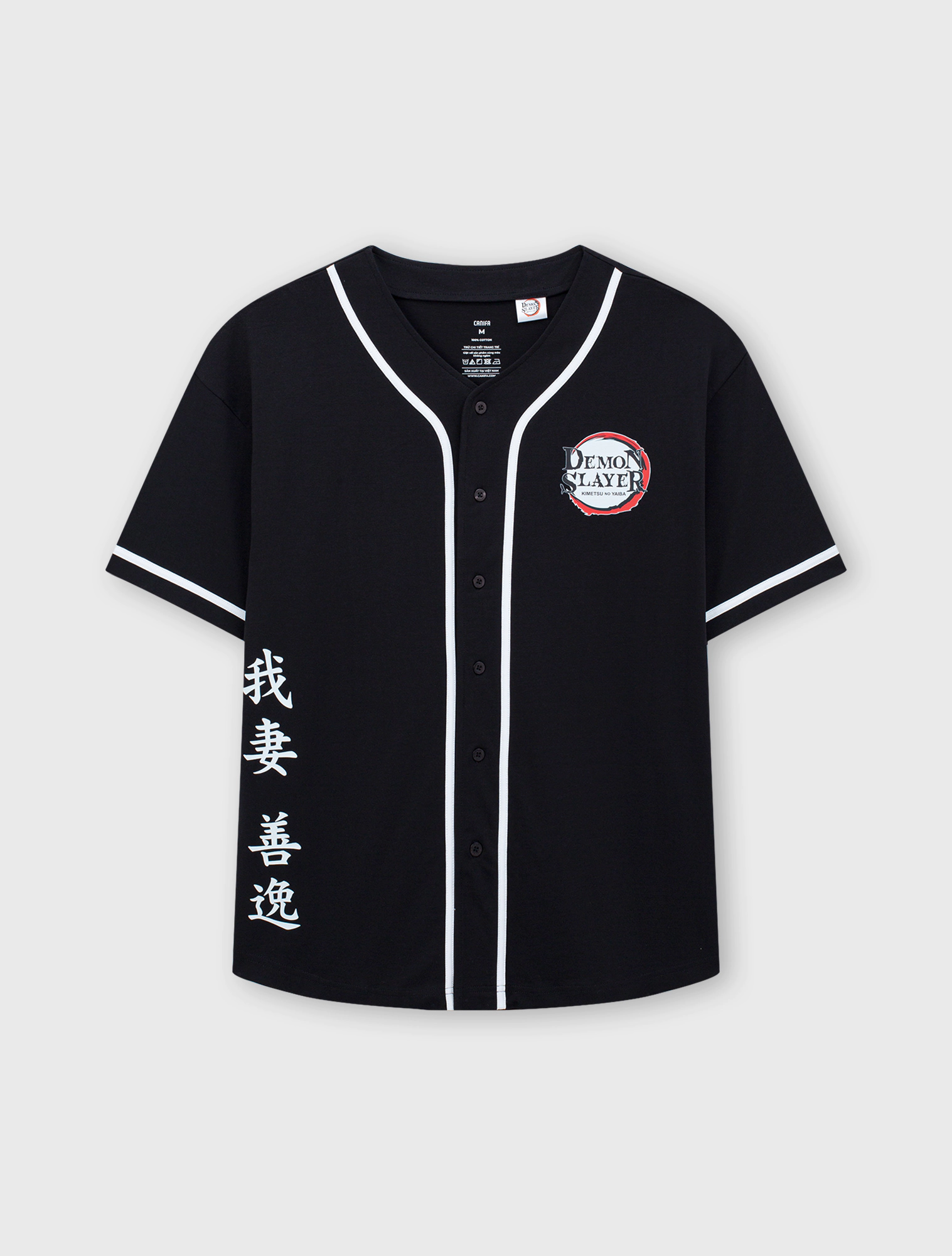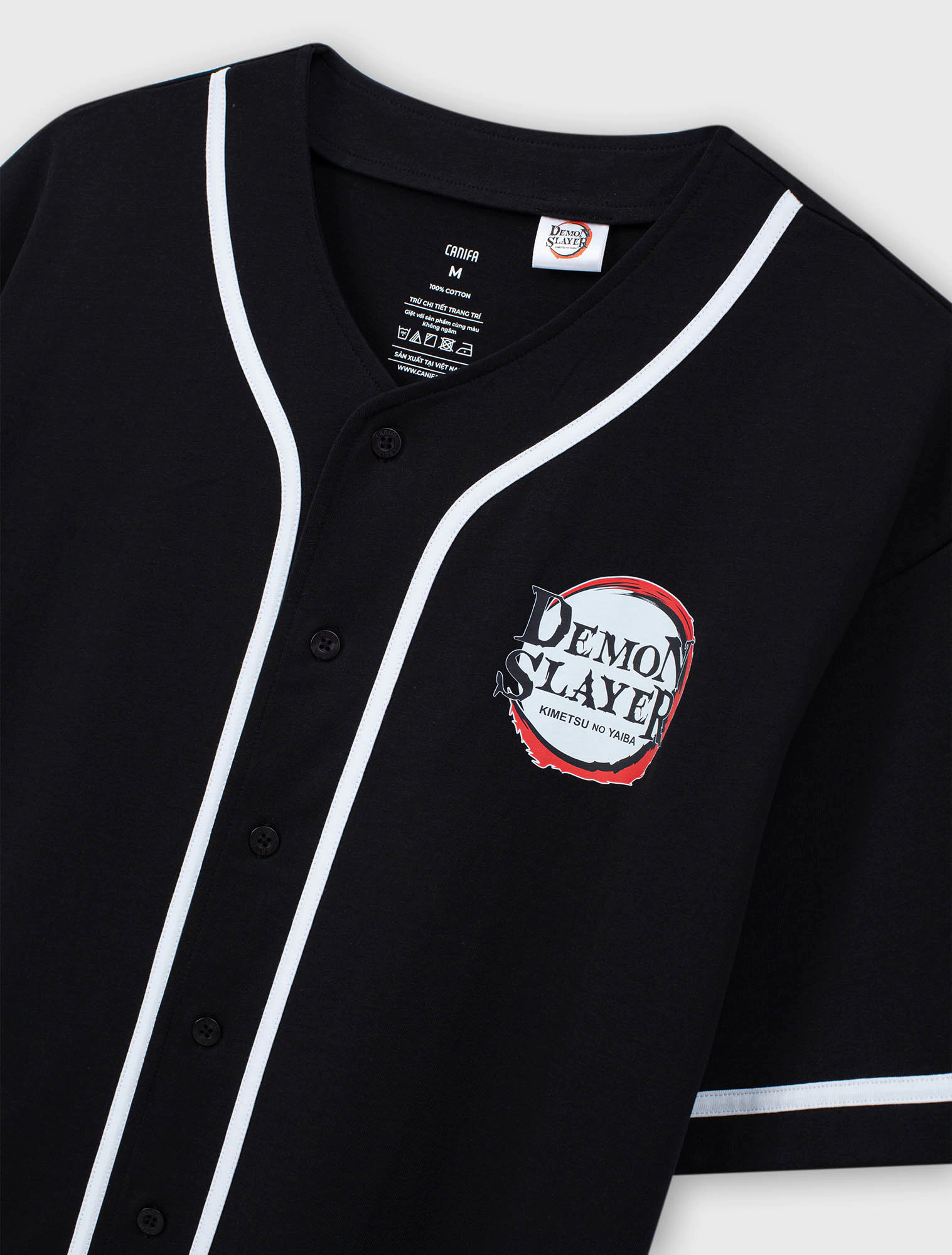 Áo khoác unisex ngời lớn. Áo kiểu bóng chày ngắn tay thời trang. Thân trước có viền dây phối màu, hình in Demon Slayer cả thân trước và sau. Chất liệu 100% Cotton mềm mại.