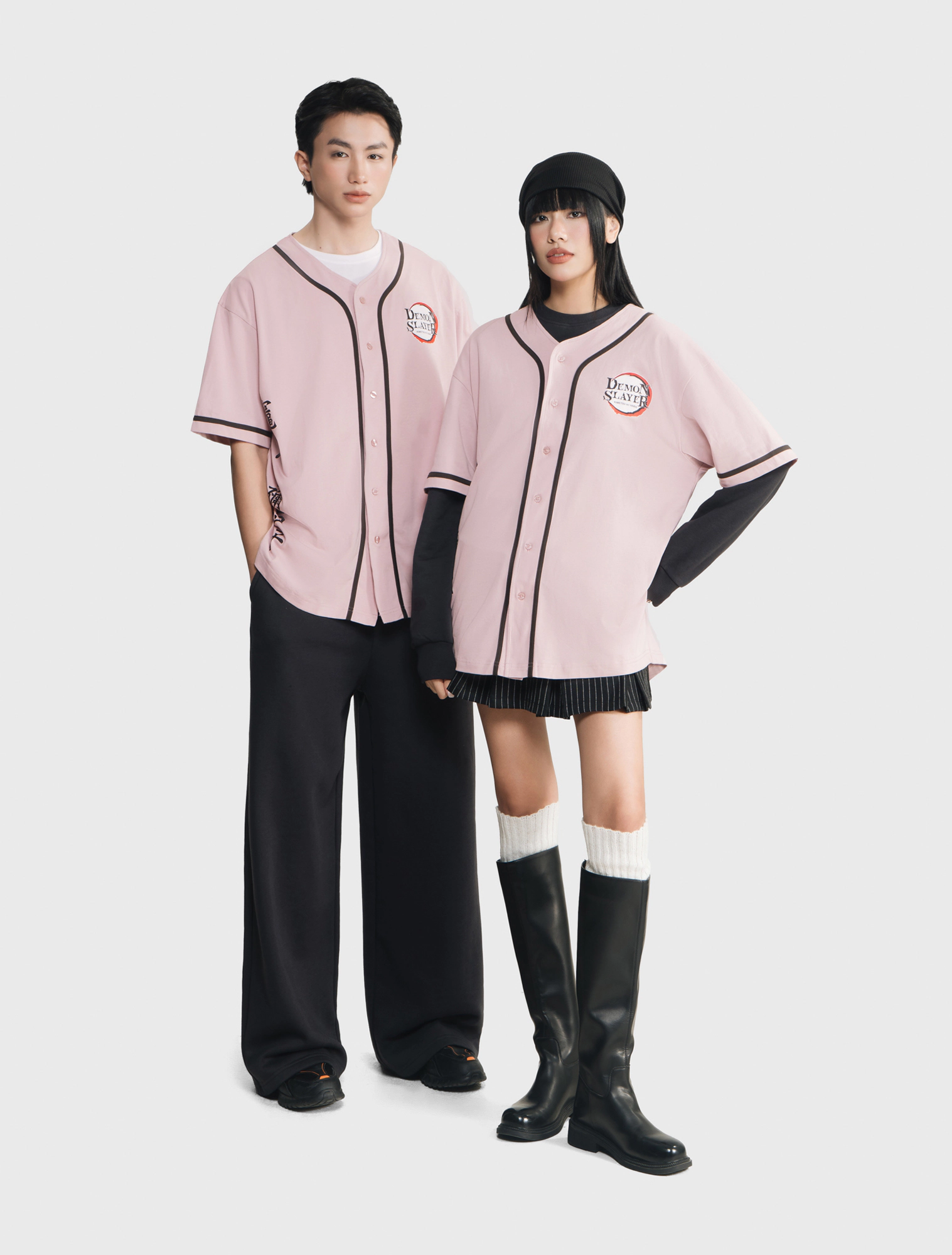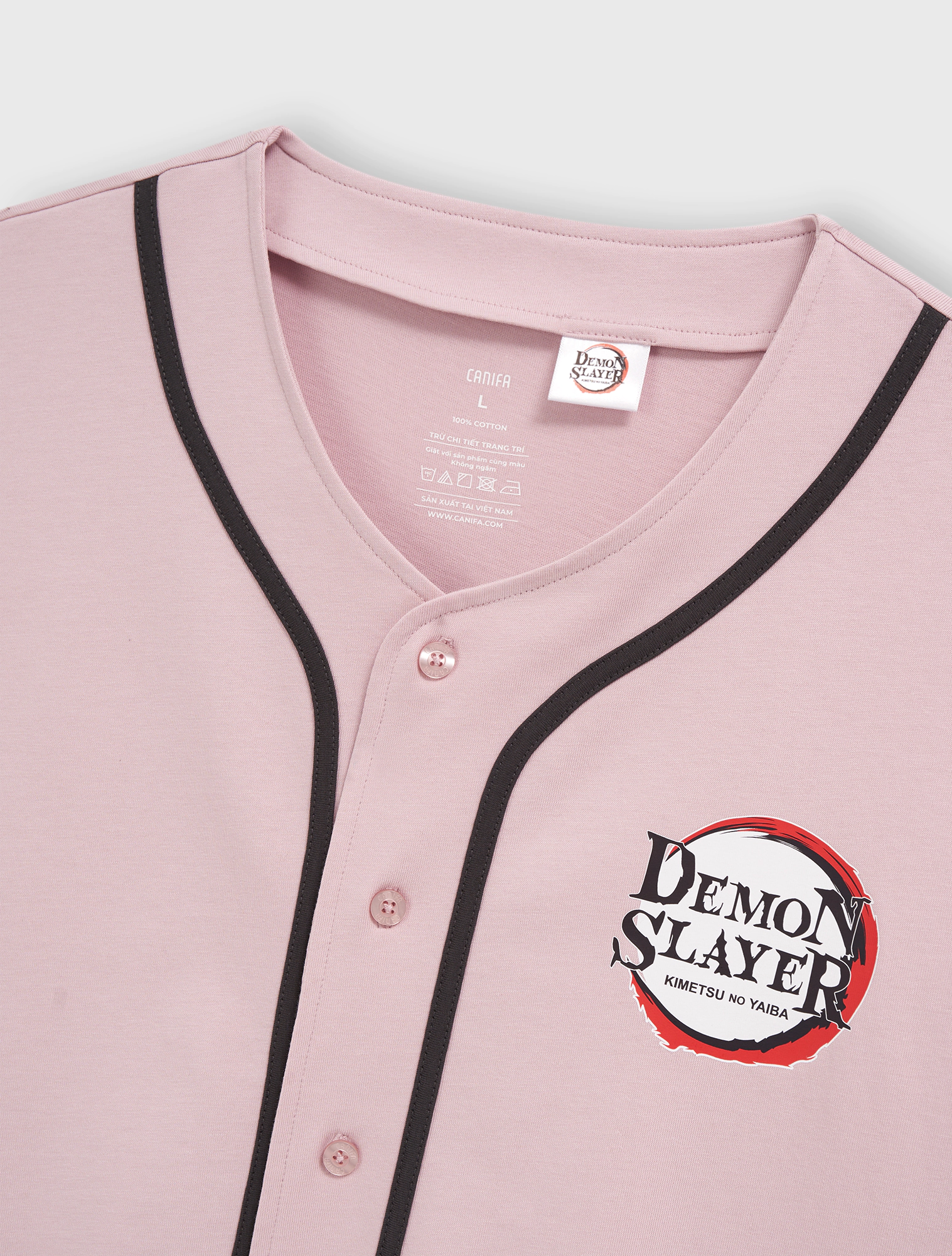 Áo khoác unisex ngời lớn. Áo kiểu bóng chày ngắn tay thời trang. Thân trước có viền dây phối màu, hình in Demon Slayer cả thân trước và sau. Chất liệu 100% Cotton mềm mại.