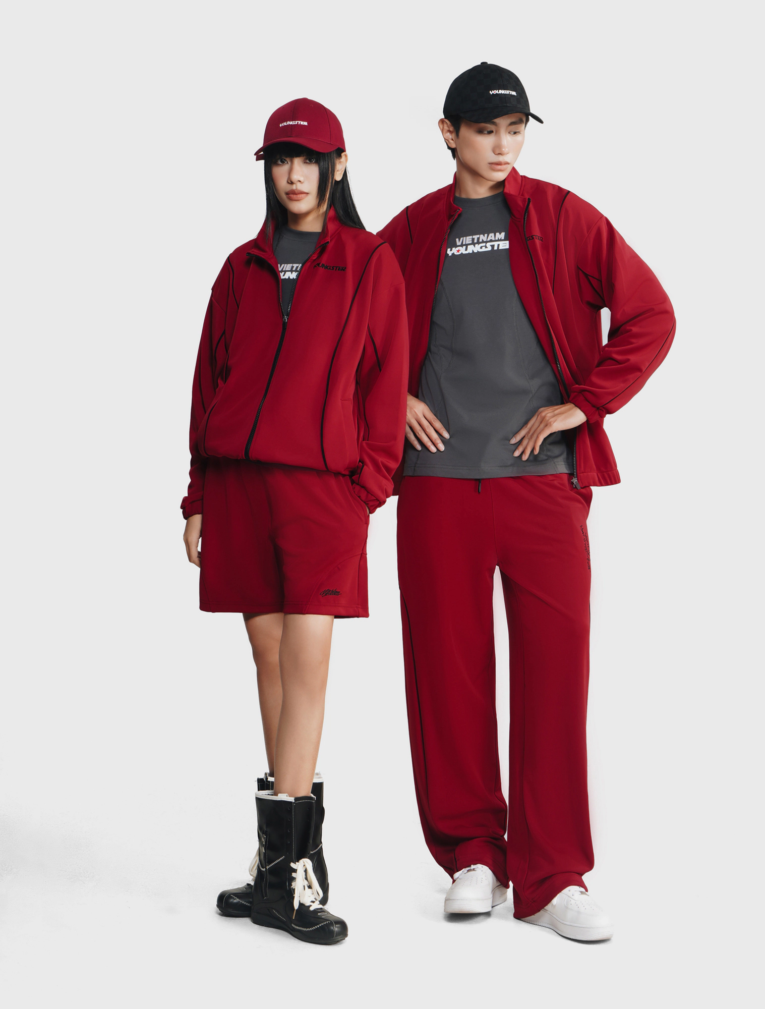 Áo khoác dày dặn với logo chữ Vietnam đầy năng lượng, đường cắt thể thao và phối màu trung tính – đỏ sẫm đặc trưng của bộ sưu tập. Thiết kế hiện đại, phom rộng streetwear mang đến vẻ khỏe khoắn và tự do, phù hợp với tinh thần urban sport của thế hệ trẻ Việt.